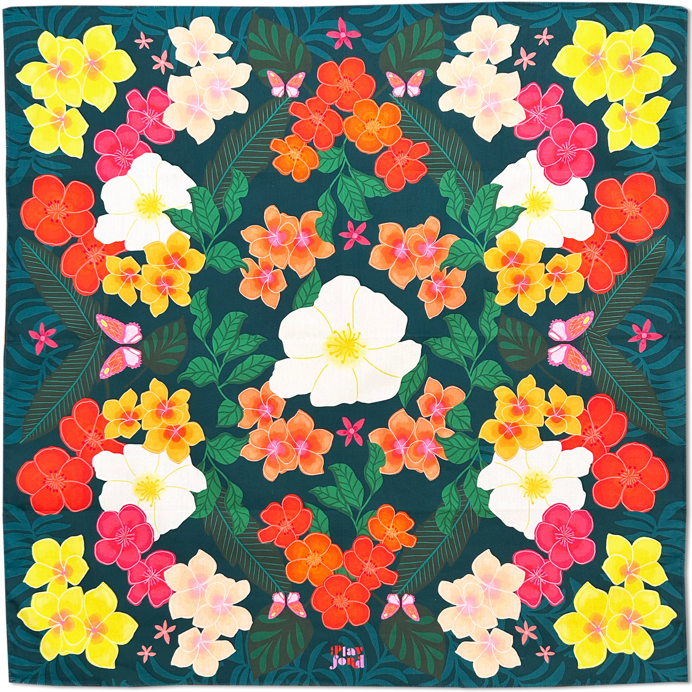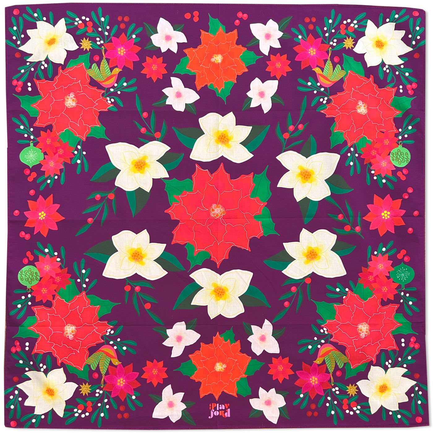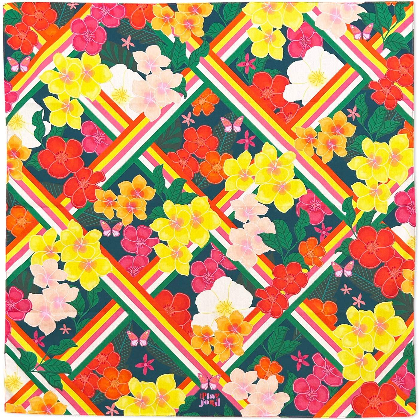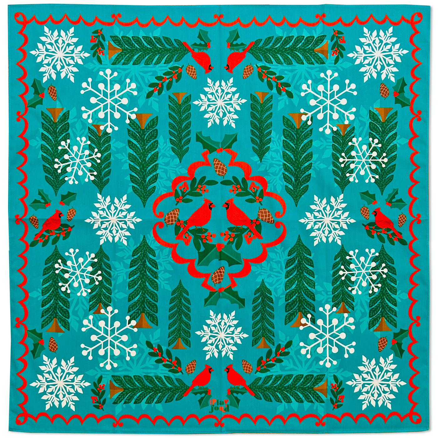 Playford Art Wraps are 27" X 27" square. Original art by Jennifer is digitally printed on 100% BCI Cotton (Better Cotton Initiative). Each wrap is stitched along the edge and carefully finished. Easy to use as gift wrap, the fabric is perfect for tying knots...it's not too thick or bulky and holds the shape of the bow. Machine washable on the cold setting, hang to dry and iron on the cotton setting. The colours do not run or fade. Jennifer gives extra thought to the corners in her designs as they are featured when used as gift wrap. Many of her designs have a bold element in the center which looks especially nice when used as tablecloths.